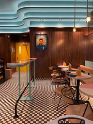 Review de Mon fils de 10 ans : j'adore la vibe café italien. Mon cortado décaf' est malade. Le décor est très beau. Review de la maman : super café! Délicieux cortado!
