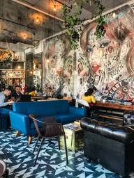 L’ambiance du café est très cool, la déco éclectique est intéressante. J’ai pris un latte glacé lait d’avoine et mon conjoint a pris un américano. On a été un peu déçus car il n’y avait pas de filtre, le café était trop torréfié à notre goût (goûtait brûlé sans beaucoup d’arômes) et l’américano a été fait en allongé avec la machine + eau chaude (au lieu d’un court allongé avec de l’eau chaude). Toutefois la barista était très gentille et on a bien profité de la terrasse.
