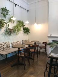 Have not been here in a long time. Latte is not bad, but asked for it in a cup to stay and got a to-go cup. They told me they ran out of mugs and just put the drink in a to-go cup. I have a travel mug that I would have happily used. The loaf was also heated up without asking me, although I think it was a bit stale and that may be why it was heated. Came here because of the line at Humble Lion, but I would rather wait in a line for something good than pay for this. Lesson learned.