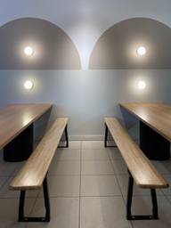 Great ambience. Very good coffee. A bit pricey. Good parking and easy to find a table at 1 pm