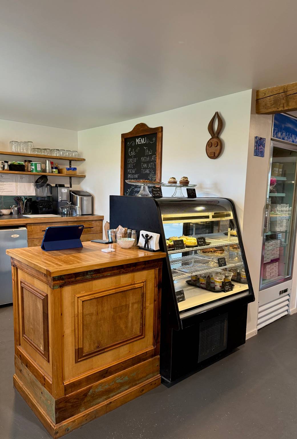 Il y a quelque temps @geogene.cafe a mentionné ce café et comme j’aime les découvertes, c’était le jour pour s’y arrêter. L’automne n’avait pas fini de dépouiller les arbres, ils étaient encore couverts de leurs feuilles aux couleurs magnifiques rendant la route agréable à regarder. Bancs, tables, chaises avec ou sans coussins occupaient encore l’extérieur du café. Les clients profitent encore de ce temps avant que…vous savez ce qui s’en viens😉. @francoise.desharnais et moi sommes chaleureusement accueillis par la propriétaire. N’étant ouvert que le week-end(pour le moment), le menu est limité, mais je ne savais pas quoi choisir😂. Tout est fait maison: muffins, quiches, confitures et je crois que j’en ai oublié. Le style rustique du café s’accorde bien avec l’endroit, on se détend. @sacreespapilles vous portez bien votre nom, on a adoré le cupcake😋. Madame, vous avez les yeux qui brillent, j’ai hâte de revenir au printemps découvrir d’autres délices.